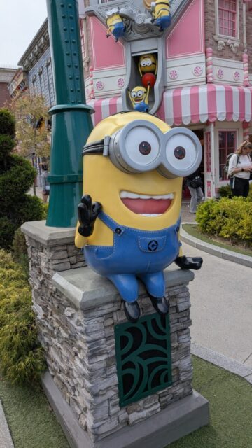 入場してすぐにお昼ご飯を食べた後、ミニオンハチャメチャライドに乗りました。動きはそれほど激しくないのですが、ディズニーシーのピーターパンとか、昔USJにあったスパイダーマン系統のアトラクションで、結構スリルがあって楽しかったです。