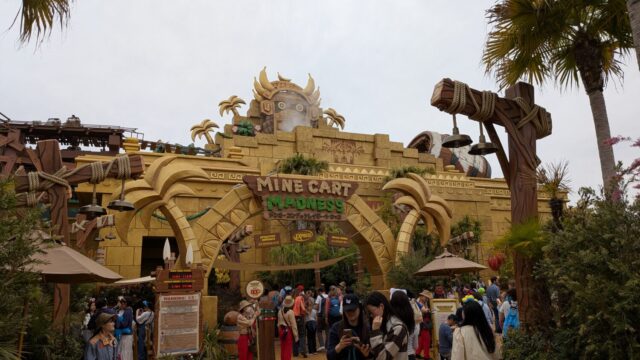 3つ目は、ドンキーコングのクレイジートロッコというこれも昨年出来たばかりのアトラクションに乗ってきました。ディズニーのビックサンダーマウンテンの小型版のようなアトラクションで、ジェットコースターですが、それほど動きが激しくないので、小さなお子様でも十分楽しめると思います。非常に人気のあるアトラクション(最大240分待ち)で、17時には本日の受付終了となっていました。